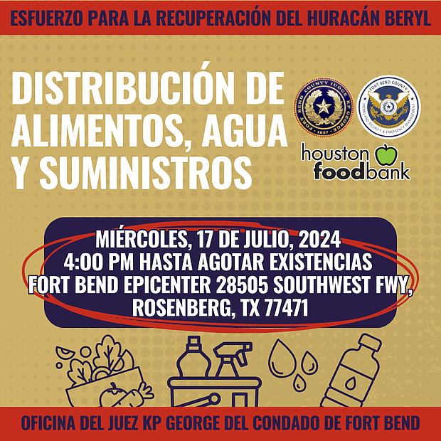Fort Bend County Judge KP George, in collaboration with the Office of Emergency Management and the Houston Food Bank, will host a crucial Food and Water distribution event on Wednesday, July 17, 2024, at 4:00 p.m. The distribution will take place at the Epicenter in Rosenberg, located at 28505 Southwest Fwy., Rosenberg, TX 77471.