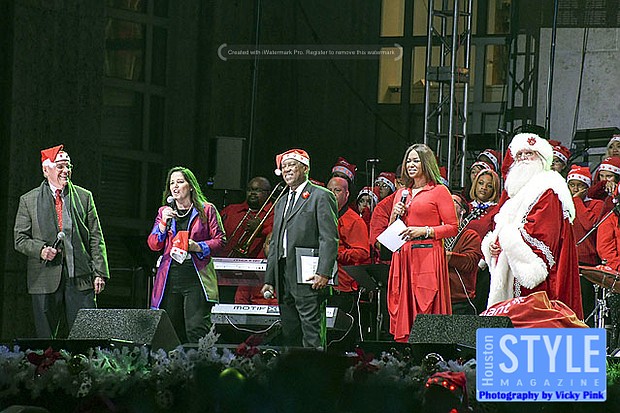 Photography by Vicky Pink - Mayor Sylvester Turner kicked off the holiday season at the 98th Annual Mayor’s Holiday Celebration and Tree Lighting presented by Reliant, an NRG company. This free holiday event has become a tradition for Houstonians to enjoy a night of music, fireworks and family fun. An enormous 65’ holiday tree twinkling with energy-efficient LED lights, striking ornaments and a sparkling star topper lit up downtown Houston. Special speakers and performers were Mayor Sylvester Turner; Elizabeth Killinger, President, NRG Retail and Reliant; Gospel recording artist Cheryl Fortune, and America’s Got Talent Kechi Okwuchi.