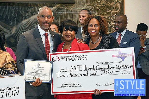 Congresswoman Sheila Jackson Lee hosted the Congressional Black Caucus Foundation (CBCF) 5th Executive Economic Summit. A VIP Reception was had to welcome the delegation to Houston. During the reception, Helping Hands to the Community and SAFE Diversity Communities received $2,000 each for their ongoing missions. The distinguished delegation for the CDCF discussed relevant economic issues, especially during this current post-Hurricane Harvey period. Themed “After Hurricane Harvey: Economic Lessons Learned and the Role of Business in National Disaster Relief Efforts,” the Summit focused on mapping minority access to capital with business leaders and others in the financial services sector in addition to those our communities impacted by Hurricane Harvey. Some in attendance were Mayor Sylvester Turner, Rev. Jesse L. Jackson, Dr. Austin Lane, Loren Lane, Carl Davis, Erica Lee Carter, State Rep. Ron Reynolds, Commissioner Rodney Ellis, and Mary Young.