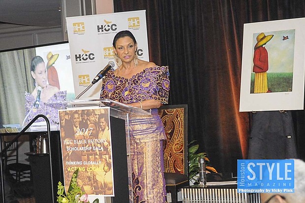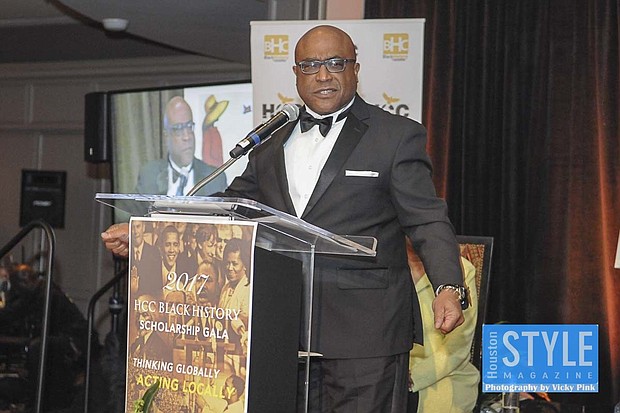 Photography by Vicky Pink - Annually the Black History Committee sets out to raise funds to support the educational endeavors of African Americans students or those of African heritage with the Black History Scholarship Gala. Under the theme, “Thinking Globally Acting Locally,” Houston Community College highlighted the efforts of a UN dynamo. The Honorable Teta V. Banks, an internationally known leader and educator who works to educate, inspire and mobilize Americans to support the efforts of the United Nations, was the gala’s keynote speaker. Celebrating the achievements of outstanding local leaders several were recognized. Rev. Bryon C. Stevenson, Sonya Taylor Stevenson, and Kandi Eastman were awarded the Unstoppable Leadership Award. Tony Chase and Gene L. Locke were honored with the Joyce M. Reynolds Lifetime Achievement Award. In addition, seven students were awarded scholarships. Khambrel Marshall and Melanie Lawson served as emcees for the evening. Others in attendance were HCC Chancellor Dr. Cesar Maldondo, Dr. Vernus C. Swisher, Janet Dokes, Nettle Washington Douglas, Eva Loredo, Ava Cosey, Christopher Oliver, Dr. Michael Edwards, Mary Benton, Brenda Davis, Jonita Reynolds, State Rep. Ron Reynolds, Senator Borris Miles, Regina Carrington, and Shar-day Campbell.