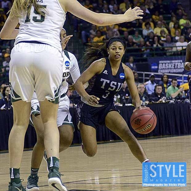 Photography by Vicky Pink - Texas Southern University Lady Tigers ended their dream season against the Baylor Bears over the weekend. The #16 Lady Tigers loss 119-30 to the #1 Lady Bears during the first round of the NCAA Division I Women’s Basketball Tournament. During their first even game in the NCAA Tournament, the Lady Tigers gave a great showing. Joyce Kennerson led TSU with 19 points and three assists. Kaitlyn Palmer added eight points. Kennerson, an All-SWAC First Team selection and the Most Valuable Player at the Toyota SWAC Tournament, raised her career points total to 893 at the end of her sophomore season.