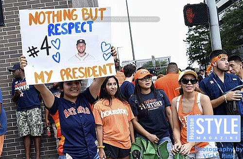 Photography by Vicky Pink - Records were shattered as Astros lovers turned out by the thousands to celebrate the World Series Champions Houston Astros. Downtown Houston was a sea of orange has fans lined the streets for the celebratory parade. Those not at the parade were firmly planted at City Hall for the rally that followed the parade where players were able to personally thank fans for their support throughout the season. Mayor Sylvester Turner declared November 3rd Go Astros Day.