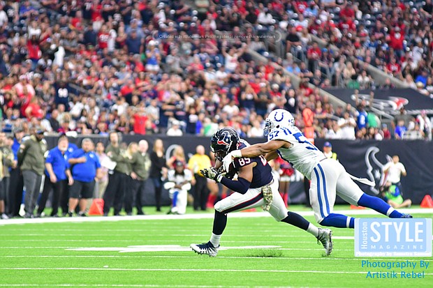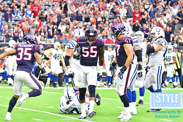 Photography by Semetra Samuel - The Houston Texans celebrated service members during their game against the Indianapolis Colts in the annual Salute to Service game presented by Bud Light. Former President George H.W. Bush did the coin toss. The Houston Texans, however, fell short of beating the Indianapolis Colts. It was their first game with Tom Savage filling in as quarterback for the injured Deshaun Watson. Head Coach Bill O’Brien said the Texans will need to coach and play better in order to win games. This game did have one highlight for the Texans as they recovered a fumble and returned it for a touchdown for the second time this season. They also had 3.0 sacks as a team for a loss of 29 total yards and had 15 players record at least one tackle and five players record five-or-more total tackles on defense.
