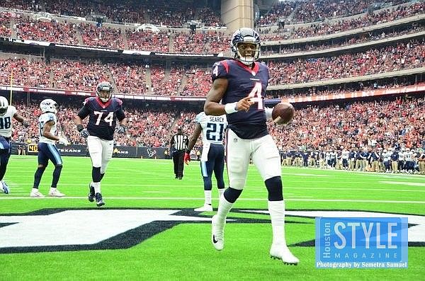 Photography by Semetra Samuel - The Houston Texans proved they were AFC South contenders after beating the Tennessee Titans 57 to 14 this past Sunday. QB Deshaun Watson continued to show why the Texans fought so hard to get him on the roster. He made four passing touchdowns and one rushing touchdown. Texans DeAndre Hopkins completed one touchdown. Both the offense and defense were on their game and gave explosive performances. The Texans are now tied for first place in the crowded AFC South with Jacksonville Jaguars and Tennessee Titans.
