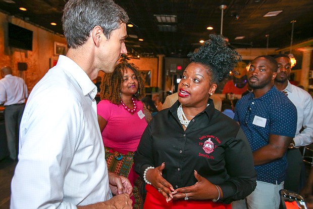 Photography Courtesy of the Beto O’Rourke Campaign - Members of the National Panhellenic Council of Houston got to pick the brain of Congressman Beto O’Rourke as he continues his campaign for the U.S. Senate. Marlon Smith organized the meet and greet meeting with fraternities and sororities to address the needs of the African American community with an intimate lunch.