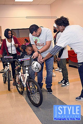 Photography by Vicky Pink - The Chris Paul Family Foundation, together with 30 of their family members, and Academy Sports partner to surprise children at the Urban Enrichment Institute (formerly the Fifth Ward Enrichment Program.) Giggles were heard and smiles were seen as 200 children between 5 years and 11 years old each received a new bicycle as an early Christmas present. The Chris Paul Family Foundation strives to positively impact individuals and families by leveling the playing field in education, sports, and life. Urban Enrichment Institute is designed to empower boys to become responsible men and productive members of their families and communities.