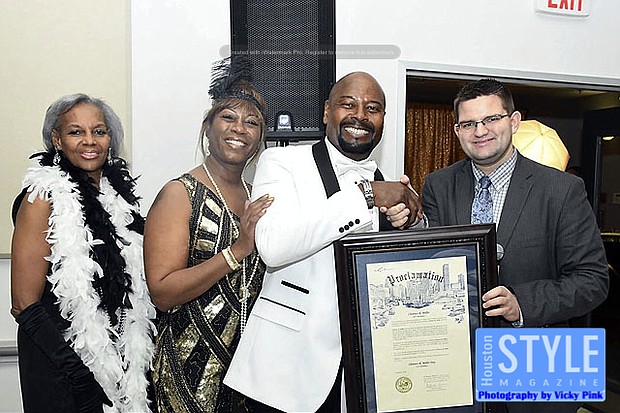 Photography by Vicky Pink - The surprise was on Clarence Miller as family and friends gave him the shock of his life when they threw him a fabulous 65th birthday party. Taking a nod to the past, the party had a Great Gatsby vibe as guest dressed in apparel reminiscent of the time period. Miller was dapper himself in a black and white ensemble and vintage vehicle to match. Houston Mayoral staff Janice Weaver and Jeff Syptak presented a City of Houston proclamation declaring February 10th Clarence Miller Day from Mayor Sylvester Turner. Some in attendance were Megan Donaldson, Cherie Ford, Mary Tucker, Jackie Mil, James Davis, and Andre Burns.