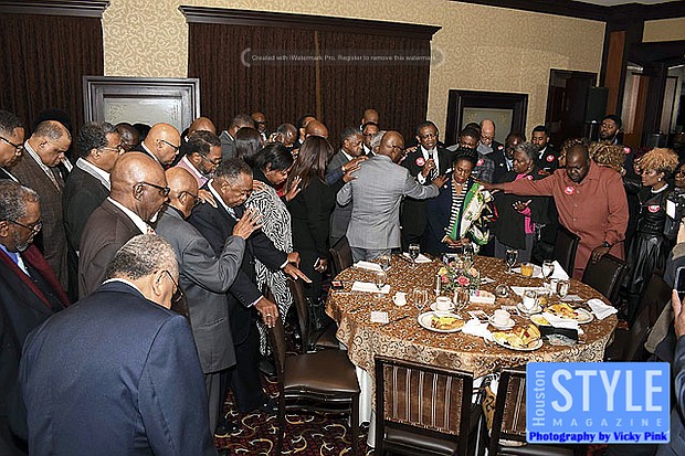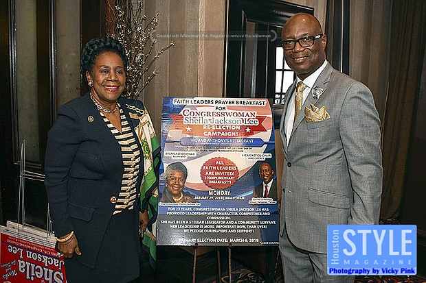 Photography by Vicky Pink - Two hundred pastors publicly declared their support for the re-election of Congresswoman Sheila Jackson Lee at a Faith Leaders Breakfast. Co-Chaired by Dr. Ralph D. West and Bishop James Dixon II, the event served as a kickoff to Lee’s campaign. Many expressed their appreciation for Congresswoman’s Lee hard work over the years and pledged to support her financially and used their influence to encourage others to support her as well. In addition, Mayor Sylvester Turner and County Commissioner Rodney Ellis both brought greetings of support. Some in attendance were Dr. Gusta Booker, James Nash, Dr. Samuel H. Smith, Cassandra Scott, Irishea Hilliard, Dr. Connie Stewart, Roderick Dawson, Dr. Sam Gilbert, Destry Bell, Johnny Tate, and Max Miller.