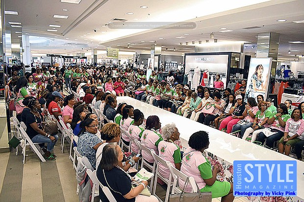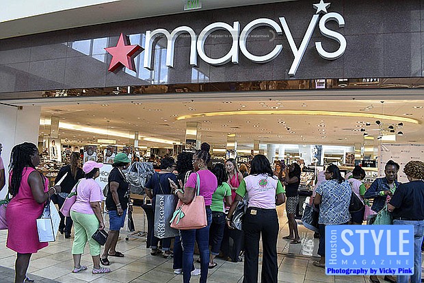 Photography by Vicky Pink - Macy’s knows high fashion just goes perfectly with the ladies of Alpha Kappa Alpha Sorority, Incorporated. The retail giant could not let the ladies come to Houston for their international conference without giving them a proper welcome. Led by Macy’s Kristyn Doar-Page and Jean Murphy, a special fashion show exploding with pink and green designs was held for members at Macy’s in the Houston Galleria. Several prominent members of the Houston area were featured in the show including Jamila Lloyd, Taylar Lewis, Camellia Jackson, TaMeka Martin, Sarah Mitchell, Michelle Simpson, and Andrea Bonner. Afterward, the ladies were able to shop, enjoy sounds from the in-house DJ, and soak up Macy’s Southern hospitality.