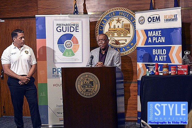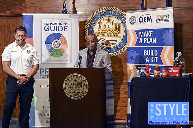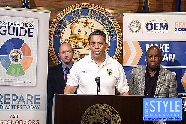 Photography by Vicky Pink - June 1st was the official start of the 2018 Atlantic hurricane season and Mayor Sylvester Turner is making sure Houstonians are prepared. In a recent press conference, Mayor Sylvester Turner discussed the city's hurricane preparations, encouraged citizens to make plans to keep their families safe, and shared the lessons learned after Hurricane Harvey. He stressed the need for citizens to get supplies for a disaster kit and monitor news sources. Houston Fire Department Chief Samuel Peña spoke about how his team is ready having had more training, getting more evacuation boats and high-water rescue vehicles.