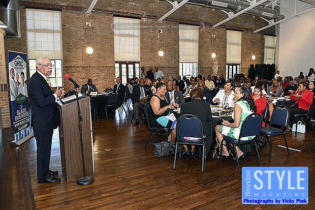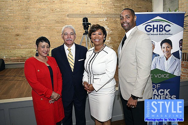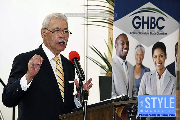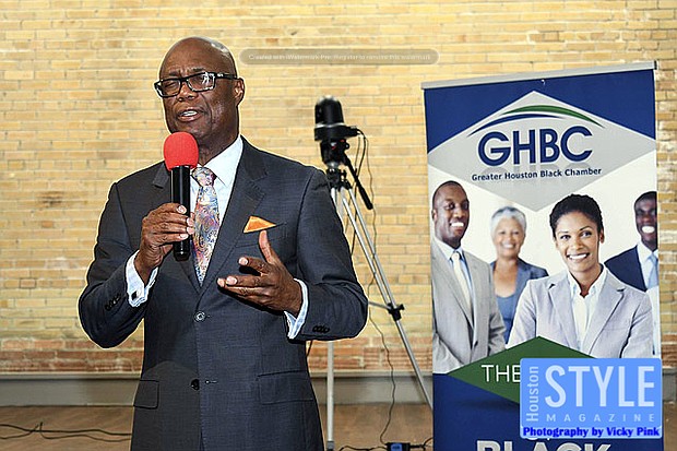 Photography by Vicky Pink - Monthly the Greater Houston Black Chamber hosts Second Tuesdays with the Chamber with a variety of guest speakers offering professional expertise on an array of subjects. This month they welcomed Dr. George C. Fraser, Chairman& CEO of Frasernet, Inc. Dr. Fraser spoke on the power and importance of excellence, equity, and entrepreneurial thinking. It is part of the Chamber’s mission to help members navigate Houston’s large, diverse population, industries and the many nuances, which are unique to Houston. Some in attendance were Jeffrey D. Wallace, Courtney Johnson Rose, John Guess, Bridgett Joe, Judson Robinson, Bishop James Dixon, and Otto Meyers.