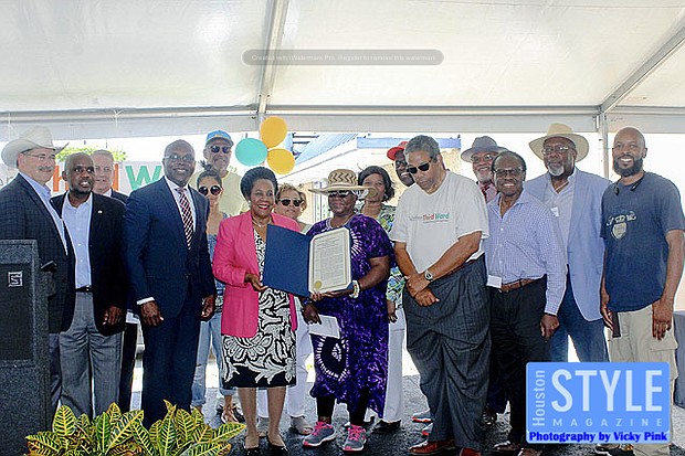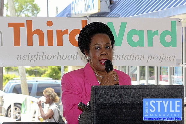Photography by Vicky Pink - The Northern Third Ward Neighborhood Implementation Project celebrated the kickoff of their neighborhood revitalization project with a grand, community friendly event. Neighbor residents were invited to share their perspective and get involved in the five-year revitalization plan. Wells Fargo is supporting the effort with a $750,000 grant through its Neighborhood Grants Program that was presented to Change Happens. The project’s goal is to support resident-driven processes to achieve a healthy, diverse and sustainable community, based on resident-defined community needs. DJ Supastar and the Jack Yates Marching Motion Band provided entertainment. Some in attendance were Rev. Leslie Smith, Congresswoman Sheila Jackson Lee, Dr. Elwyn Lee, Carl Davis, Imarogbe Stokes, Algenita Scott Davis, Pastor Linda Davis, Ty Morrison, Blynthia Scott, Trinell Davis, Darryl Montgomery, Hughdell Young, Johannes Henderson, Rev. Preston Allen, Maia Shelby, Munirah Olabisi, and Gayle Waden.