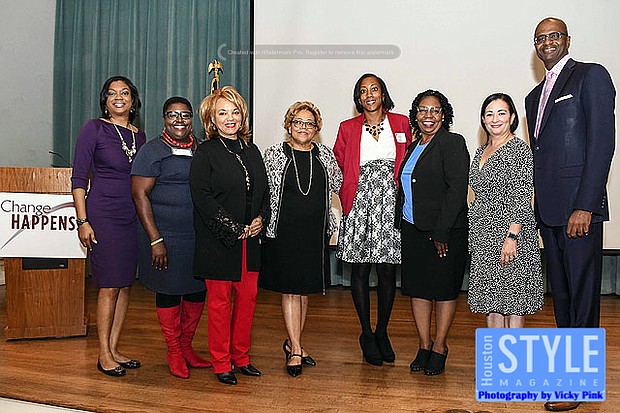 Photography by Vicky Pink - Change Happens recently hosted their 14th Annual “Making Change Happen” Fall Luncheon to continue to plant seeds of hope and renew its promise to empower people to help themselves. It has become tradition to honor a citizen for their outstanding work in the community. This Change Happens honored Houston City Councilman Dwight Boykins for his selflessness. Cynthia Cisneros emceed the affair that featured Michael Harris as the keynote speaker. Some in attendance were Dr. Elwyn Lee, Change Happens CEO Helen Stagg, former Rocket Steve Francis, Gabrielle Gunn, Charlotte Bryant, Vanessa Reed, Lucy Bremond, Dorothy Booker, Jamie Cashaw, Barry Bonds, Genova Boykins, Stephen Williams, Polly Sparks Turner, Lola Robinson, Jeri Bell, Lauren Harris, Fran-Victoria Stevens, Misha McClure, Laura Mayorga, Keith Cornelius, Lisa Brooks, and Marsha Penn.