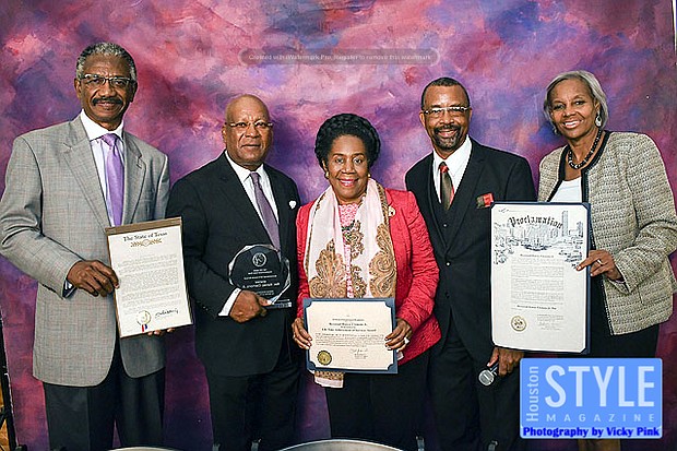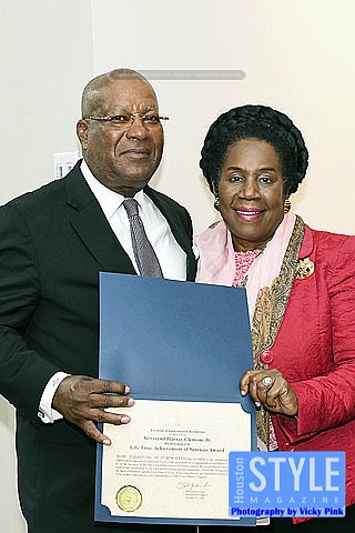 Photography by Vicky Pink - The Fifth Ward Neighborhood Civic Club is dedicated to the uplift and enhancing the quality of life for those living in and supporting Fifth Ward. Members honored Rev. Harvey Clemons Jr., pastor of Pleasant Hill Baptist Church, at the 2nd Annual 2018 Awards Banquet. Rev. Clemons received the Lifetime Achievement Award for his donation of his time, finances, and resources. Rev. Clemons received proclamations from local, state and national political leaders. In addition, Rev. Clemons is the current Fifth Ward Community Redevelopment Corporation Chairman. Some in attendance were Congresswoman Sheila Jackson Lee and State Rep. and Harold Dutton.
