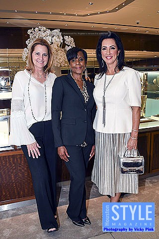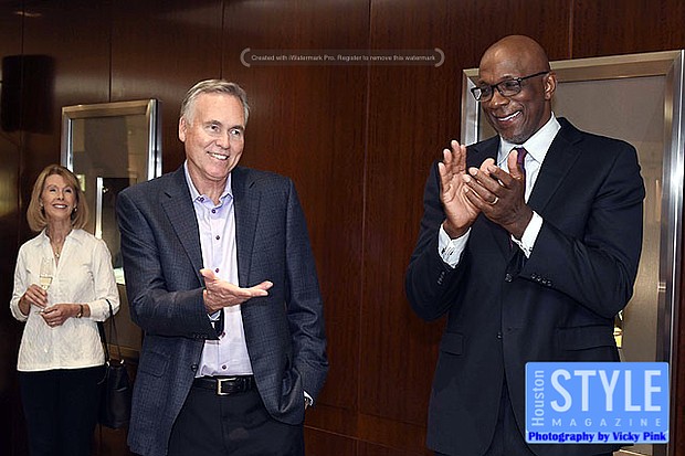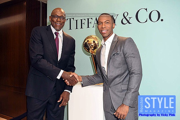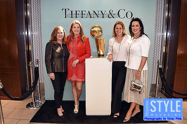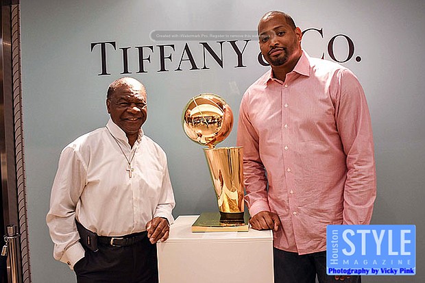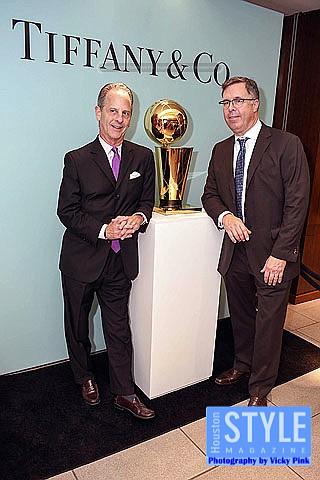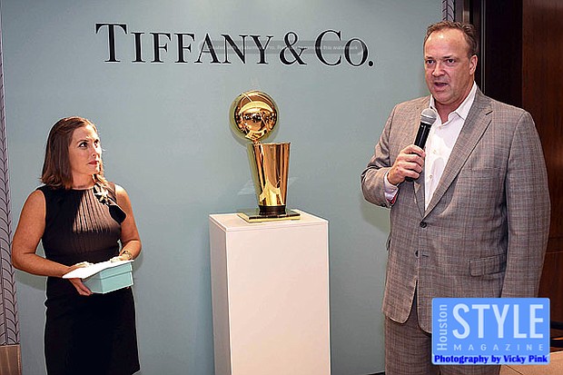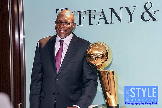 Photography by Vicky Pink - Guests were able to remember the Houston Rockets Championship years in 1993-1994 and 1994-1995 when they won back-to-back NBA titles at the Houston Rockets: An Icon of Sports Excellence affair. Paige Fertitta and Kim Wilson, Director of Tiffany & Co. invited guests for cocktails and to see the reveal of the Larry O’Brien Trophies handcrafted by Tiffany & Co. Larry O’Brien trophies are awarded annually by the National Basketball Association to the NBA championship winning team. The team commissioned two replica trophies to reside in Houston after the originals were kept by former Houston Rockets owner Leslie Alexander after he sold the team to new owner Tillman Fertitta. The replicas permanent home will be at the Toyota Center in the team’s offices. Some in attendance were Clyde Drexler, Jonathan Martin, Melinda Spaulding, Calvin Murphy, Robert Horry, and Mike D’Antoni.