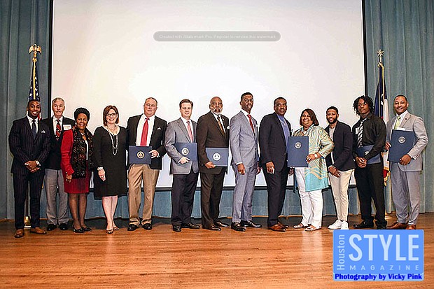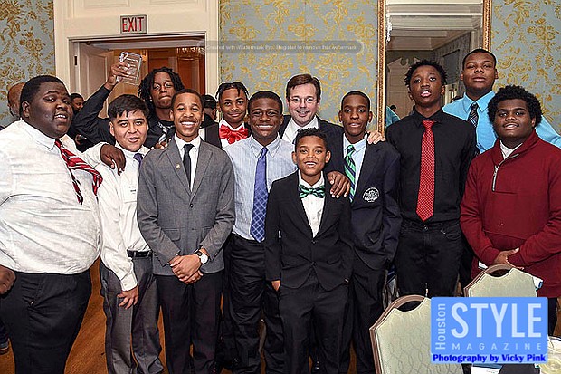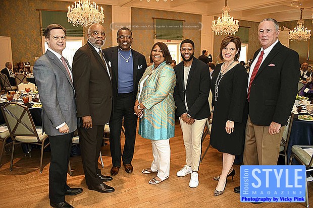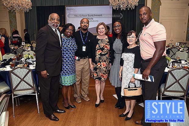 Photography by Vicky Pink - The Urban Enrichment Institute (formerly the Fifth Ward Enrichment Program) held their 17th Annual Luncheon enrichMEN - "Enriching Others, Enriching Yourself." NBA All-Star and Houston Rocket, Chris Paul, and his family were honored as the recipients of this year’s “Ernest McMillan Lifetime Achievement Award” for their dedication and continuous efforts to provide resources, locally and nationally, that support the development of strong communities. Also, the accomplishments of the young men within the program were highlighted. Amy & James Dwyer and Niki & Brett Warren were the event co-chairs and Chauncy Glover was the emcee. Charles Savage, Jack Christie, George Forman, Julyan Lee, Paula McCann Harris, and Morris Barnes.