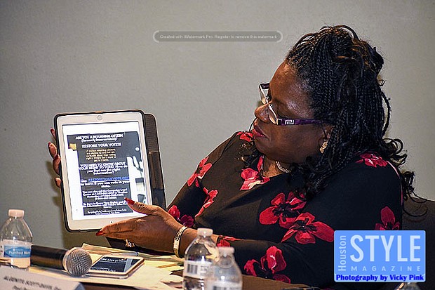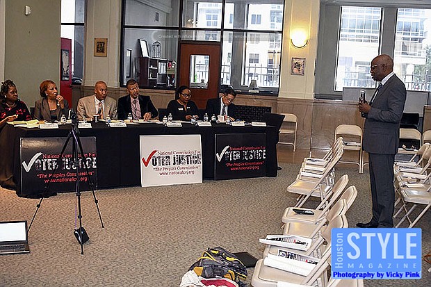 Photography by Vicky Pink - The National Commission for Voter Justice and HAUL called on all students, seniors, community organizers, churches and others to let them know about any problems that they had with voting in the last election. The two organizations are trying to get ahead of problems concerning voter suppression, intimidation, disenfranchisement, id, restoration for returning citizens, machines, provisional ballot misuse, disability access, bilingual assistance, high school and college registration, and difficulties with the homeless wanting to vote. They don’t want anything standing in the way of voters for this upcoming election. So they are making sure that voter are educated with information about their voter’s rights.
