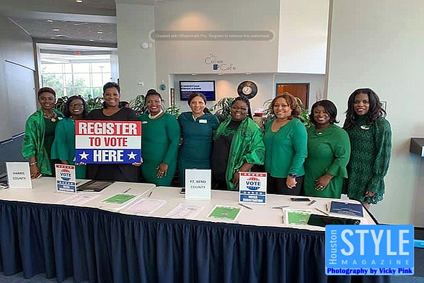 Photography by LaDonna Harris - The Katy-Richmond Area TX Chapter of the Links, Incorporated are making sure people get put to vote by ensuring they are registered voters. Members participated in two voter registration drives as part of their Voter Education and Empowerment Weekend. Armed with the proper forms and voter education, they registered citizens from Harris and Fort Bend counties in time for the upcoming midterm elections. Members also provided onsite verification of registration status. Information concerning voter ID laws, early voting locations, and registration deadlines were disseminated to the congregations. The event was held as a continual effort to encourage active engagement in the political process and mobilize the community for change.