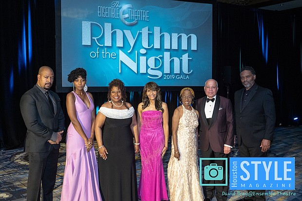 Photography by David Bray - The Ensemble Theatre hosted their signature fundraiser gala under the theme “Rhythm of the Night.” Emcees Melanie Lawson (ABC13) and Khambrel Marshall (KPRC-TV 2) guided guests through the program that opened with remarks from Mayor Sylvester Turner. Ensemble Theatre Board President Jesse Tyson expressed gratitude on behalf of the theatre to the Winell Herron, Honorary Chair; and Co-Chairs Gaynell Drexler and Heidi Smith and sponsors for their leadership and support. Richard Lawson, Legacy Award; Morocco Omari, Actor of the Year; Amanda Holmes, Rising Star Award; Lora Clemmons, President’s Award (Posthumously); and Dr. Teddy McDavid, Community Volunteer of the Year were all honored at the affair where the proceeds will help with the theatre’s $2 million operating budget.