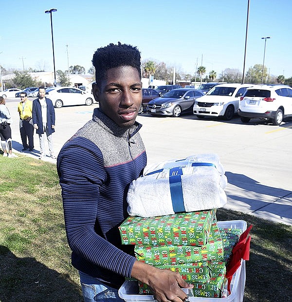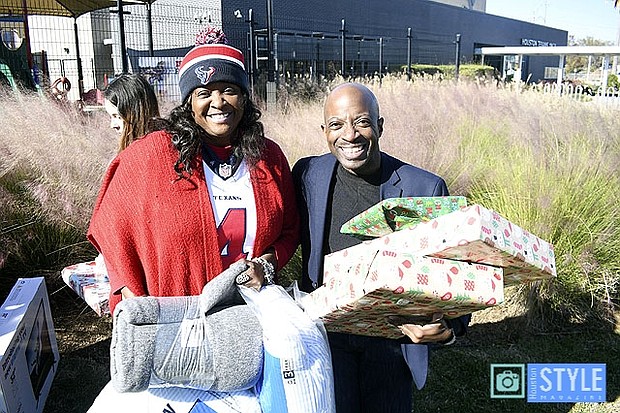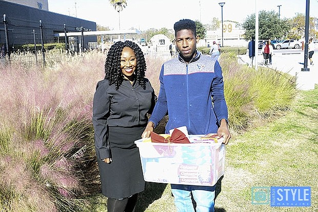 Photography by Vicky Pink - Chris Landrum is known as the linebacker for the Houston Texans, however, over the holidays he got a new title, Santa Claus. Through the Chris’s Christmas Wish Foundation, Landrum in partnership with STEM UP, an after school program at Booker T. Washington run by Dr. Kiki, he was able to give four Washington high school students a very merry Christmas. Gifts of pleasure like toys and of need like blankets and pillows were given to the children with smiling faces. Landrum said he was able to have a Christmas and wanted others to have one as well.