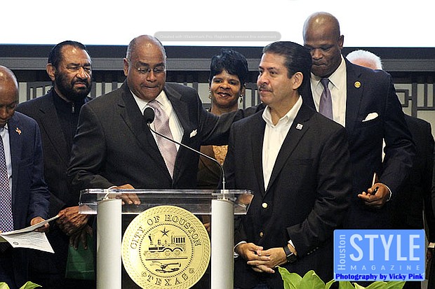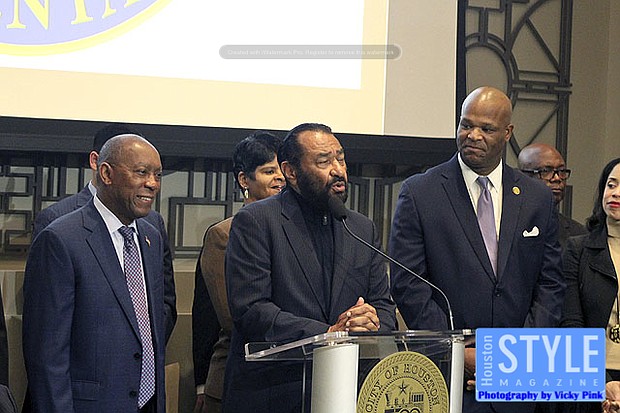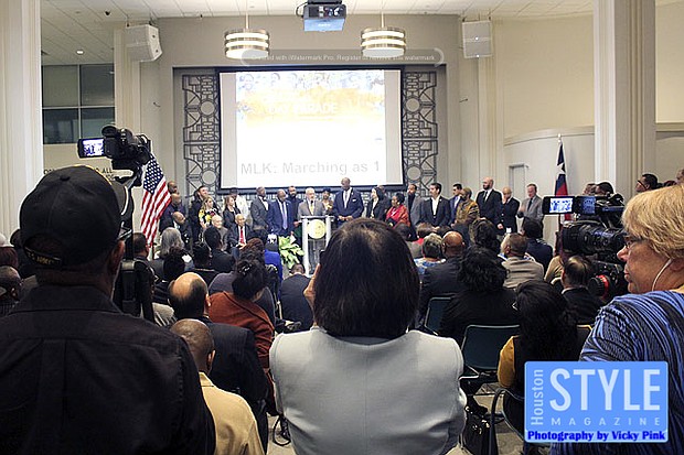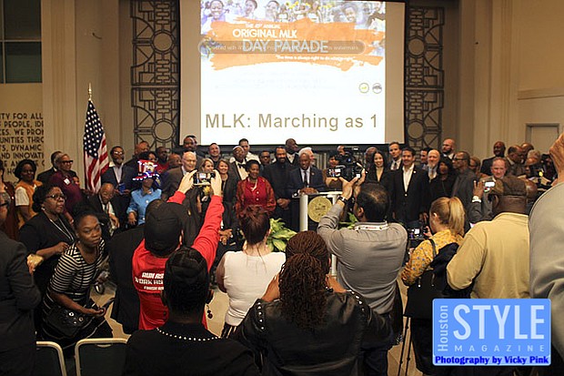 Photography by Vicky Pink - Mayor Sylvester Turner was proud to announce that the city of Houston would give its full backing behind one Martin Luther King Jr. Day Parade in partnership with the Black Heritage Society. This year’s parade will be extra special since the passing of Black Heritage Society founder Ovide Duncantell. Some in attendance were Congressman Al Green, Congresswoman Sheila Jackson Lee, Rev. William A. Lawson, Bishop James Dixon, Commissioners Rodney Ellis, and Adrian Garcia, and City Council members Dwight Boykins and Amanda Edwards.