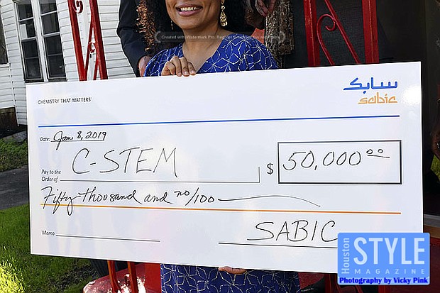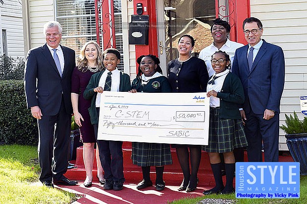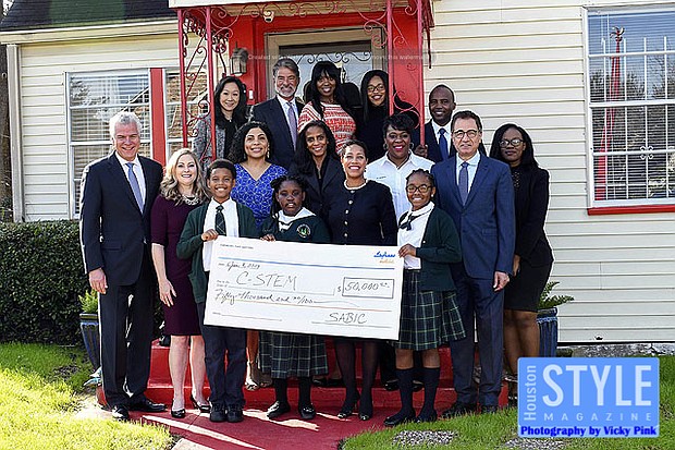 Photography by Vicky Pink - Houston-area SABIC employees were happy to award $50,000 each – totaling $150,000 – to Houston Children’s Charities, C-STEM, and Trees for Houston. In celebration of November’s Giving Tuesday, SABIC employees were invited to vote for three local charities from a list of non-profits underpinning the company’s corporate social responsibility goals. SABIC is working with each non-profit to determine how the funds will be used. Some in attendance were C-STEM President and CEO Dr. Reagan Flowers, SABIC Vice President Greg Adams, and SABIC Americas Human Resources Senior Manager Kim Wilson.