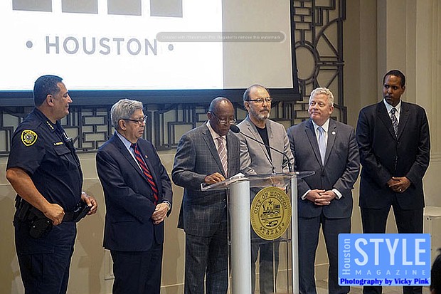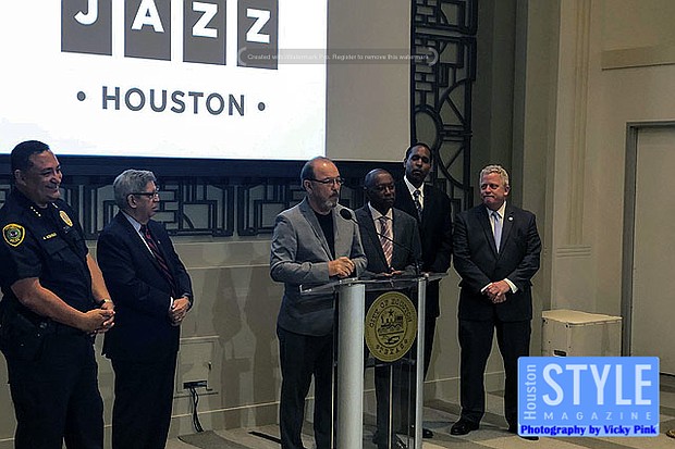 Photography by Vicky Pink - Mayor Sylvester Turner rolled out the welcome carpet for jazz artist Ruben Blades. The artist is in town to perform at a fundraiser concert for Jazz Houston's Education Programs, and for the Houston Association of Panamanians Scholarship Fund at Revention Music Center.