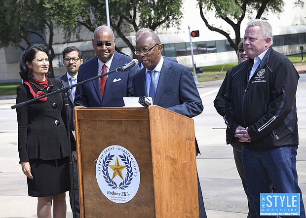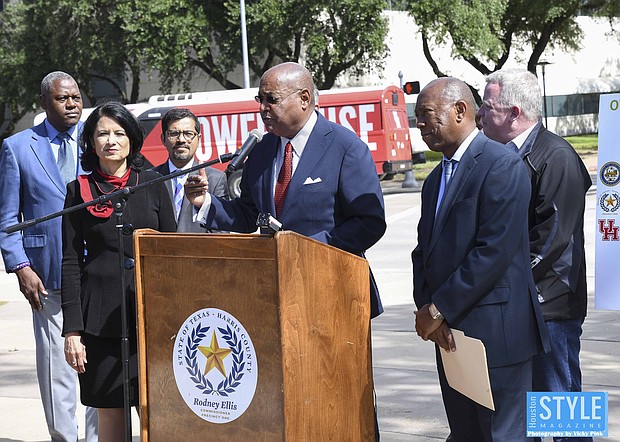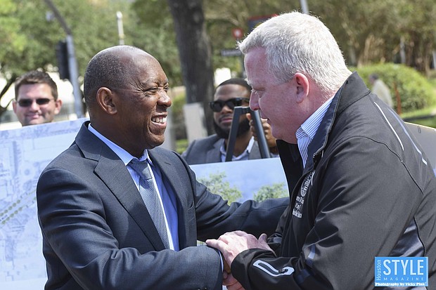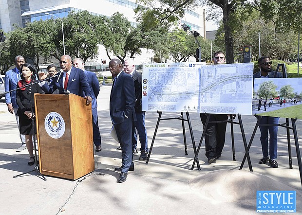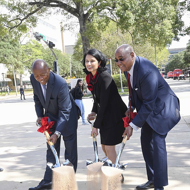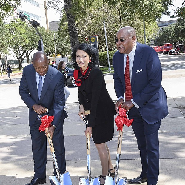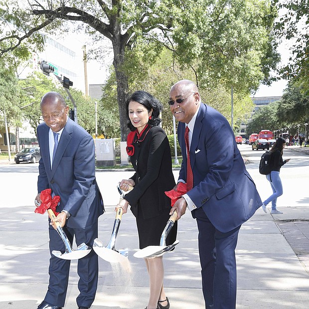 Photos by Vicky Pink - Harris County Commissioner Rodney Ellis, Mayor Sylvester Turner, and UofH President Renu Khator broke ground on a $19 million Cullen Boulevard construction project to improve mobility and drainage in the area. Precinct One will contribute $15 million, the city to contribute $4 million, and UofH will pay for amenities such as pedestrian lighting, bus shelter, and benches. The groundbreaking took place on October 21st.