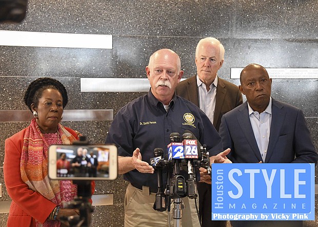 Photography by Vicky Pink - Mayor Sylvester Turner held a press conference about the Coronavirus and Houston’s plan to address it. He said the health risk from COVID-19 remains low for Houstonians. He also spoke about how public health experts indicate there is no need for the general public to avoid large gatherings in Houston. He further explained why the Houston Livestock Show and Rodeo would continue which was that the rodeo is primarily a regional event with attendees from the Houston area, where there is currently no community spread of COVID-19. (Since the press conference, it was announced that the rodeo would be shutting down to the Coronavirus outbreak.) More information can be found online by logging onto HoustonEmergency.org.