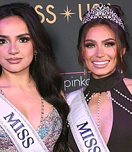 (L-R) Miss Teen USA 2023, UmaSofia Srivastava, and Miss USA 2023, Noelia Voigt attend Supermodels Unlimited Magazine Presents: Billboards Over Broadway - NYFW Celebrity Event … Published on May 14, 2024 |