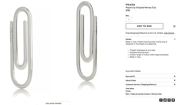 But if you're still planning to blow your paycheck on the clip, don't fret: "Prada" is engraved on one side, so no one will mistake the $185 investment for its one-cent counterpart.