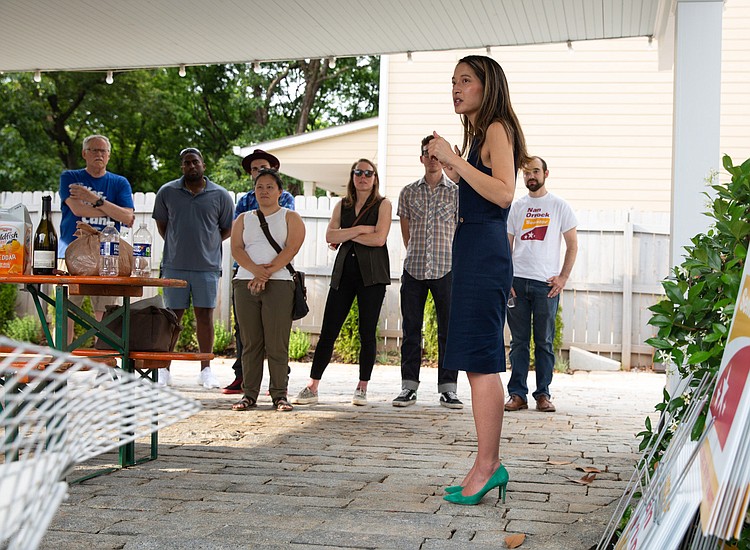 Saturday evening, she and her team made a pitch for votes and campaign money at a backyard party attended by a clutch of business owners, other Democratic politicians and some of her staff and volunteers.