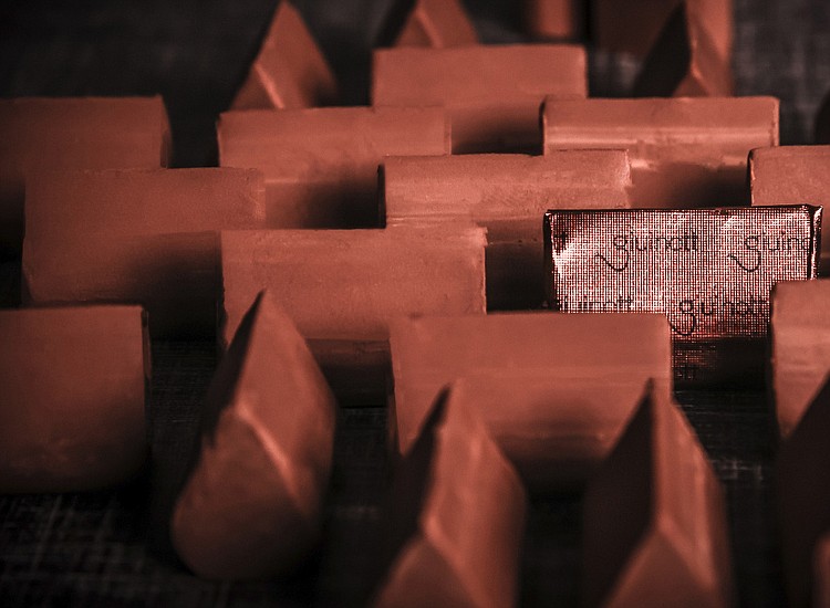 To create gianduiotti, they press the gianduia mix into lasagne-like sheets. These sheets are then shredded and beaten into a paste on an old granite basin, just like those used in the past, says Faletti.