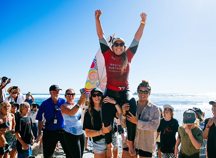 In the men’s event, Australia’s Jack Robinson won, beating two-time world champion John John Florence, who had scored a perfect 10 in the semifinals.