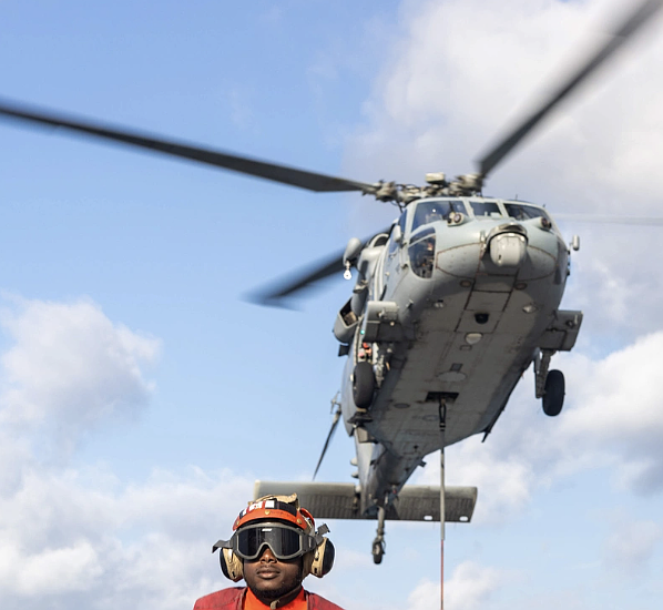 Keywords for SEO: Houston Navy Sailor, USS Harry S. Truman, MH-60S Sea Hawk, Helicopter Sea Combat Squadron 11, U.S. Navy flight deck operations, Houston military news, Atlantic Ocean naval missions.