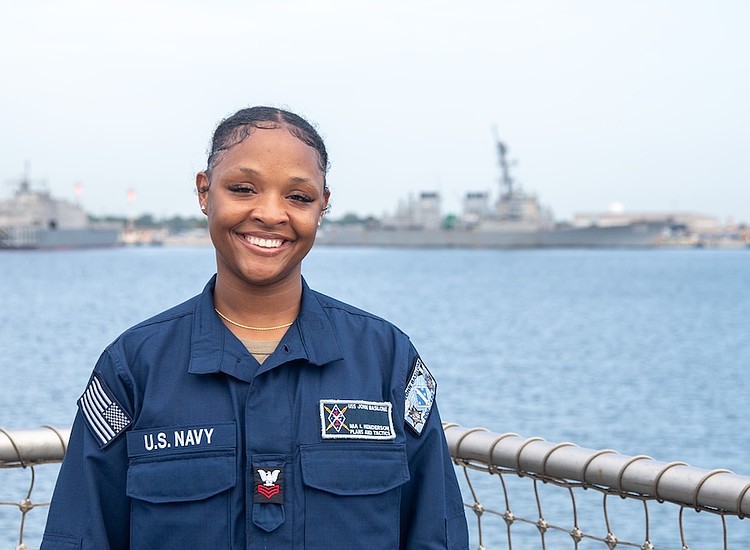 Petty Officer 1st Class Nia Henderson, a proud native of Missouri City, Texas, is charting an inspiring course of service aboard the USS John Basilone (DDG 122), one of the Navy’s newest and most advanced guided-missile destroyers stationed out of Mayport, Florida.