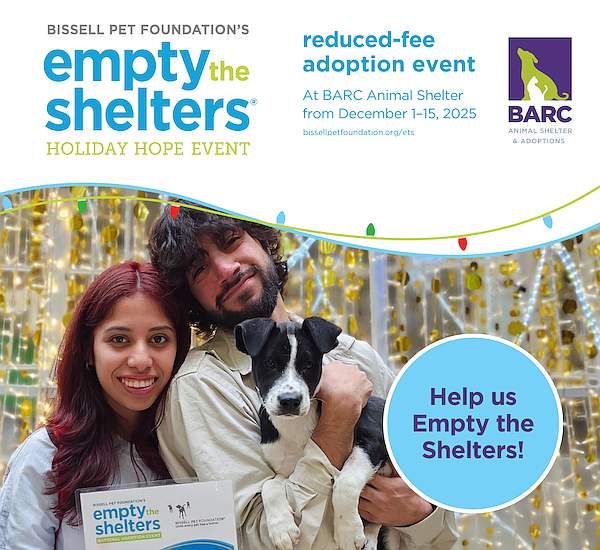 To provide more opportunities for adoption, BARC will extend its hours by opening on Mondays, traditionally a day the shelter is closed. Regular adoption hours during the event will be 12 p.m. to 5 p.m. daily from December 1–15.
