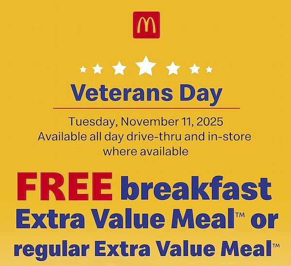 In recognition of Veterans Day, Tuesday, November 11, 2025, McDonald’s restaurants across the Greater Houston area will honor military servicemen and servicewomen with a free breakfast or regular Extra Value Meal. The gesture is part of the brand’s continued commitment to celebrating those who have served and sacrificed for the nation.