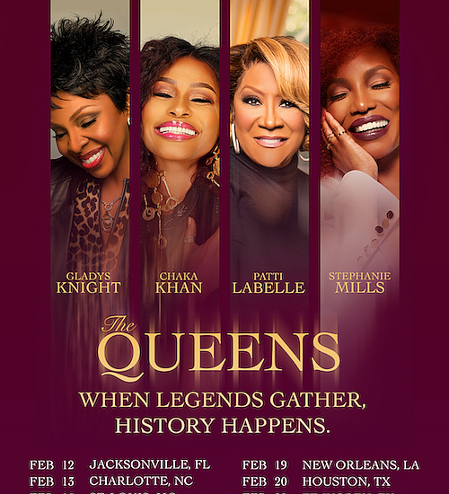 Following two sold-out runs across the country, Chaka Khan, Patti LaBelle, Gladys Knight, and Stephanie Mills are extending their historic tour, The Queens! 4 Legends. 1 Stage., into 2026. The tour has become a defining live music event, bringing four trailblazing artists together for a celebration of legacy, sisterhood, and timeless music.