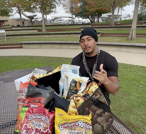 Texas A&M University linebacker Daymion Sanford has been recognized for his game-changing performance in Week 12 with the “Crunch Time Hero of the Week” Award from PorkRinds.com, the nation’s premier destination for pork rind enthusiasts.