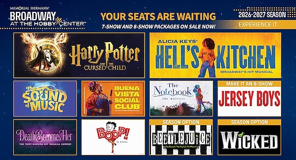 Seven- and eight-show Broadway at the Hobby Center subscription packages go on sale Tuesday, February 3, at 11 a.m., with prices starting at $331. Current 2025–2026 subscribers will be automatically renewed into an eight-show package on February 17, 2026, with the ability to review accounts in advance.