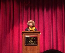 Angela Davis, the 1960’s radical, spoke to adoring students at Texas State University. She had a lot to say on a wide spectrum of social and political issues.