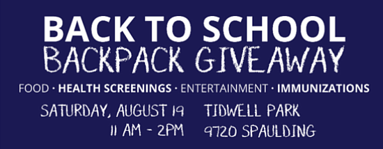 FREE Backpacks this Saturday @ Tidwell Park