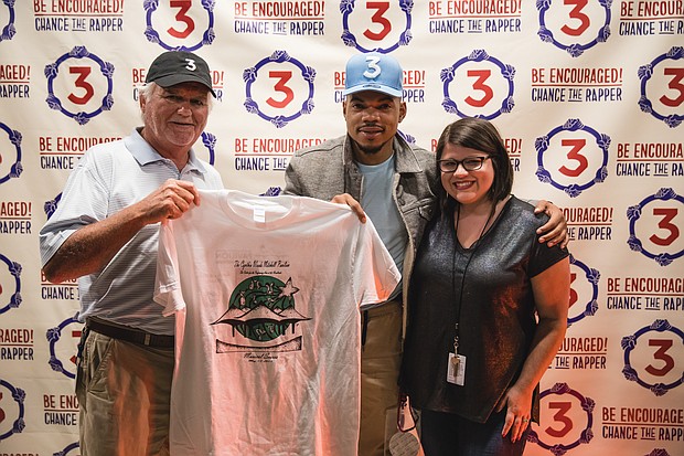 Chance the Rapper and the winning T-shirt design for The Pavilion’s Musical Scores program