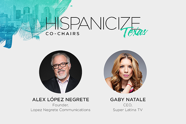 Nationally renown Hispanic marketing industry leader Alex López Negrete, CEO and founder of Lopez Negrete Communications, and multi EMMY Award-winning journalist and media entrepreneur Gaby Natale, CEO of Super Latina TV, today were named co-chairs of the first annual Hispanicize Texas event that will take place in Houston on Saturday, July 29th.