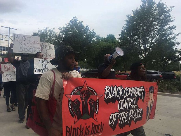 Shouts of “Black Lives Matter!” echoed down Houston streets during a spirited solidarity march ending outside City Hall.