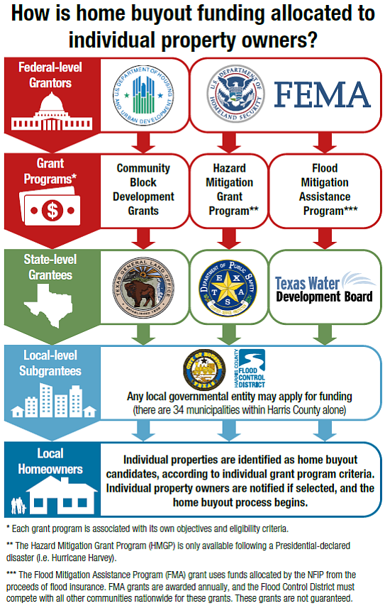 Federal grants can be used to fund the buyout, elevation or reconstruction of eligible residential properties. The City applies directly to the State for funding on the community's behalf. There are different flood risk reduction grants depending on: