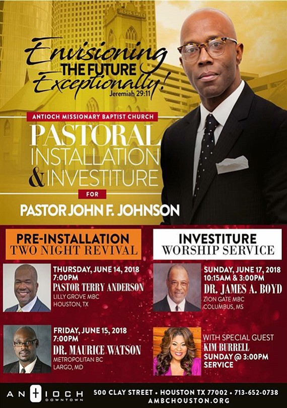 On Sunday, June 17, Antioch Missionary Baptist Church Downtown will be installing Rev. John Fitzgerald Johnson as it's 13th pastor.