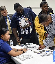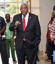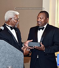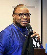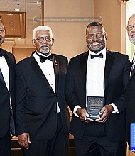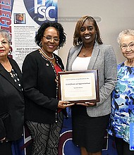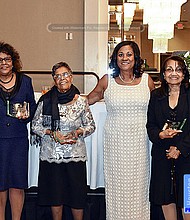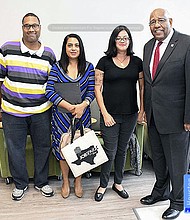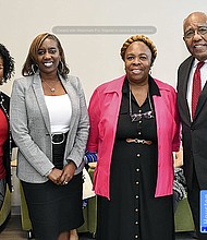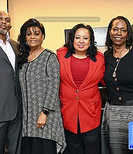 The all-female officials team, plus referee Elbert Lassiter (far right) and umpire Leonard VanHoose (far left), Published on November 15, 2018 |