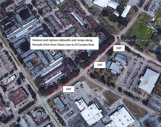 Mayor Pro Tem Dave Martin is pleased to announce, in an effort to provide increased pedestrian mobility as well as safety, Houston Public Works will be making repairs to the sidewalk on the northern side of Ramada Drive from El Camino Real to Diana Lane. Mayor Pro Tem Martin has allocated $53,250.00 from his Council District Service Funds for the sidewalk repairs.
